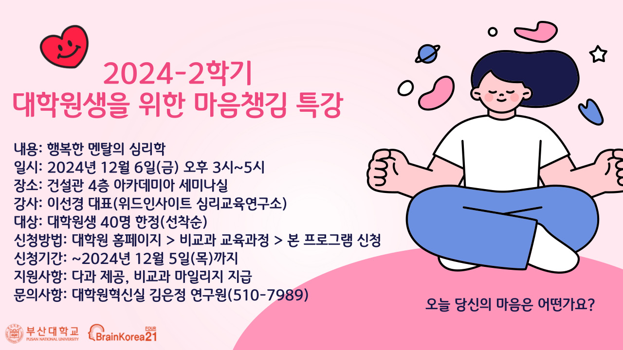 [모집/공고] 2024-2학기 대학원생 마음 챙김 특강 모집 안내