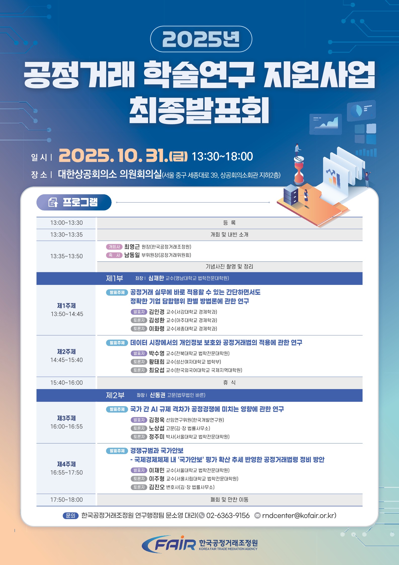 [한국공정거래조정원] 2025년 공정거래 학술연구 지원사업 최종발표회 개최(10/31 금)