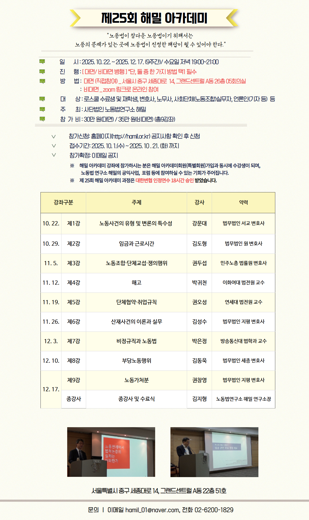[사단법인 노동법연구소 해밀] 2025년 제25회 해밀 아카데미 참가 안내
