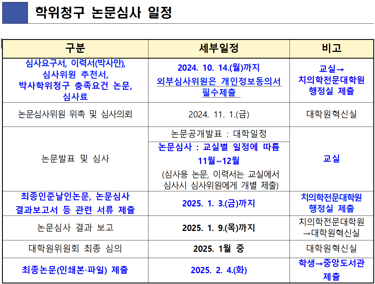 2024학년도 전기(2025년 2월) 학위청구 논문심사 일정 안내