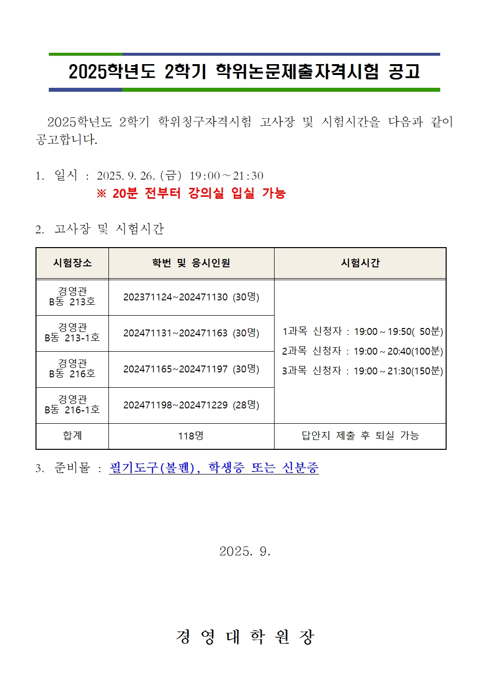 fnctId=bbs,fnctNo=3507 작성일 2025.09.23 수정일 2025.09.23 작성자 김희경 조회수 429 학위논문제출자격시험 고사장 공고 및 응시자 유의사항 안내 첨부파일 첨부파일이(가) 없습니다.
