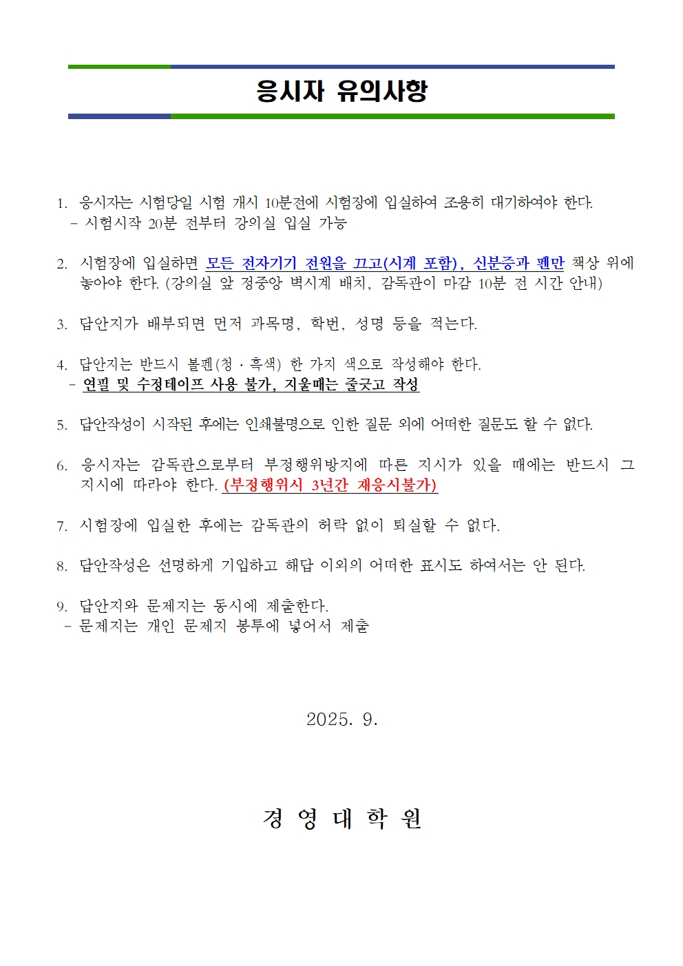 fnctId=bbs,fnctNo=3507 작성일 2025.09.23 수정일 2025.09.23 작성자 김희경 조회수 296 학위논문제출자격시험 고사장 공고 및 응시자 유의사항 안내 첨부파일 첨부파일이(가) 없습니다.