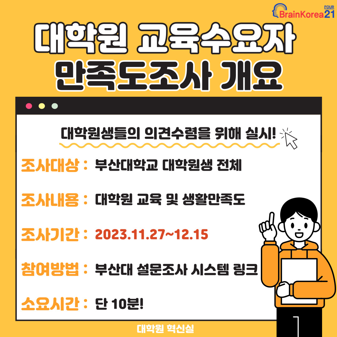 [BK21 대학원혁신] 2023학년도 교육수요자만족도조사 실시(~12/15)