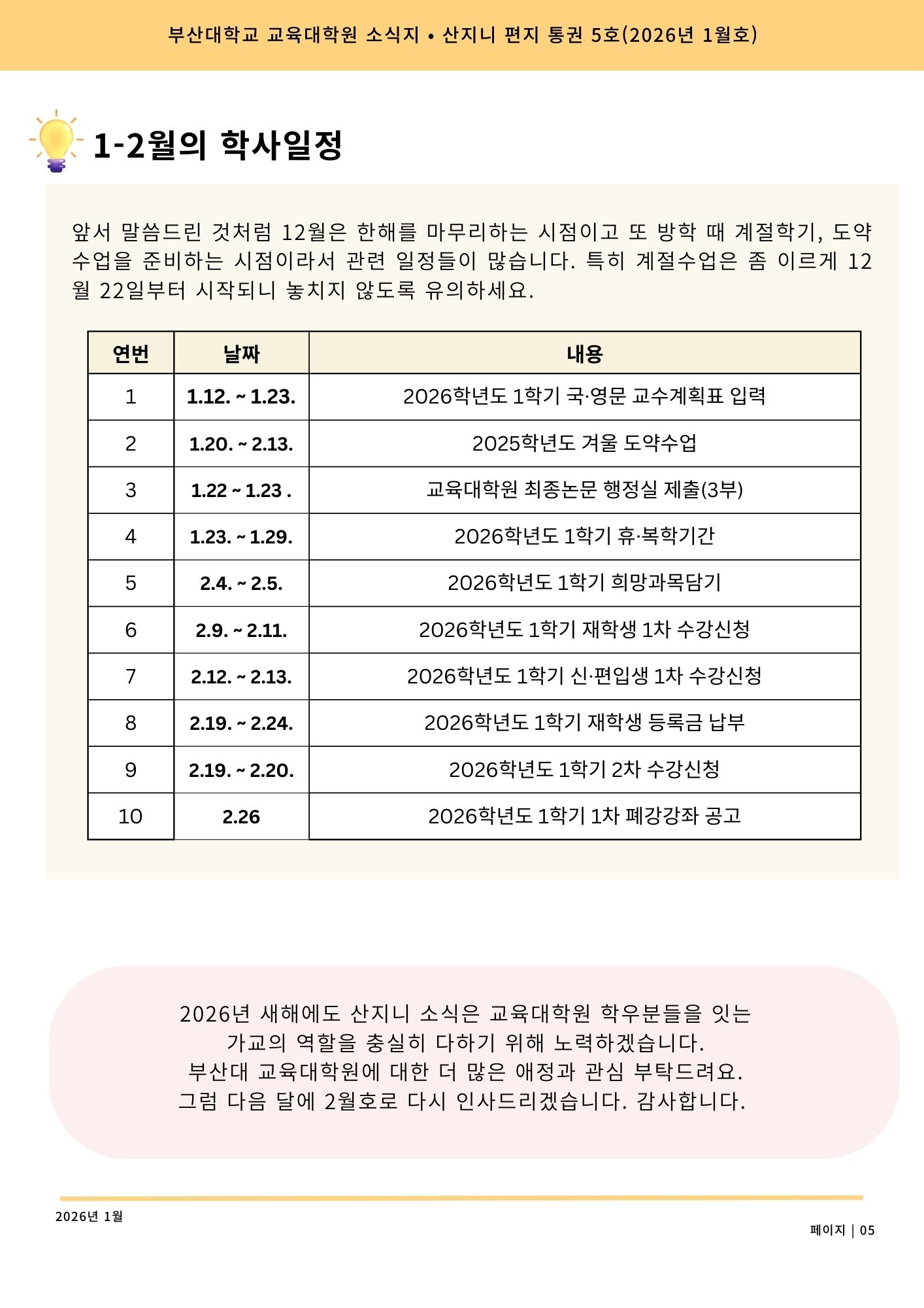 fnctId=bbs,fnctNo=18919 교육대학원 소식지 - 산지니 편지 2026년 1월호(통권5호) date 2026.01.05 name 교육대학원 e-mail view 33 첨부파일 첨부파일이(가) 없습니다.